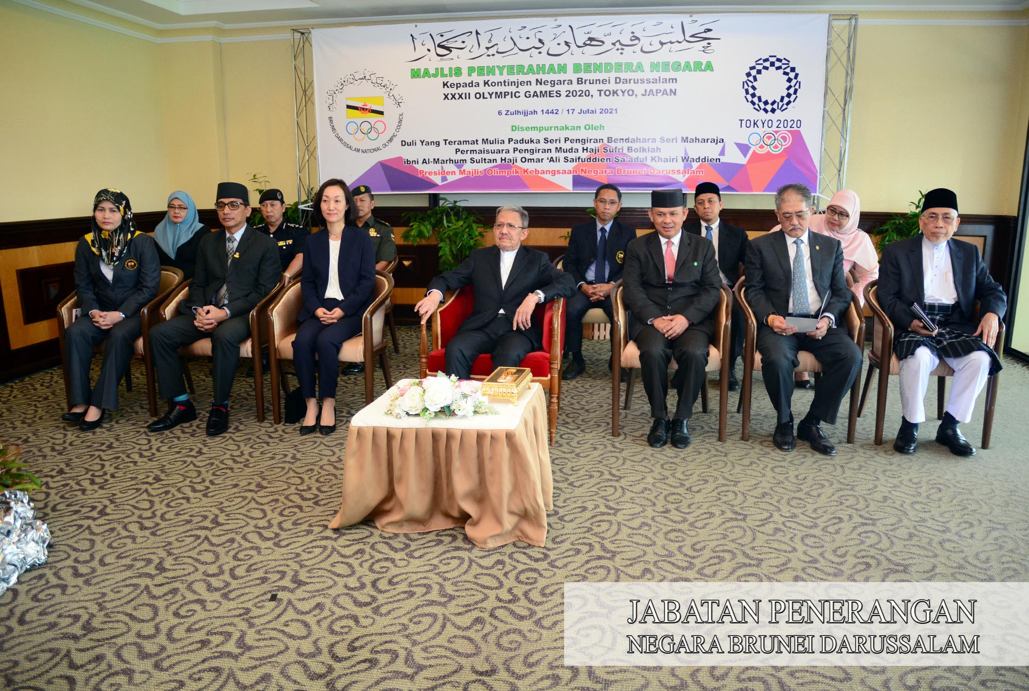 2 atlet NBD sertai Sukan Olimpik Tokyo Japan 2020 yang akan diadakan secara rasminya pada 23 Julai hingga 8 Ogos 2021 Kontinjen NBD dianggotai seramai tujuh orang yang terdiri daripada dua orang atlet dan lima orang pegawai termasuk Chef de Mission pegawai perhubungan pegawai urus setia dan jurulatih berkenan bergambar ramai bersama